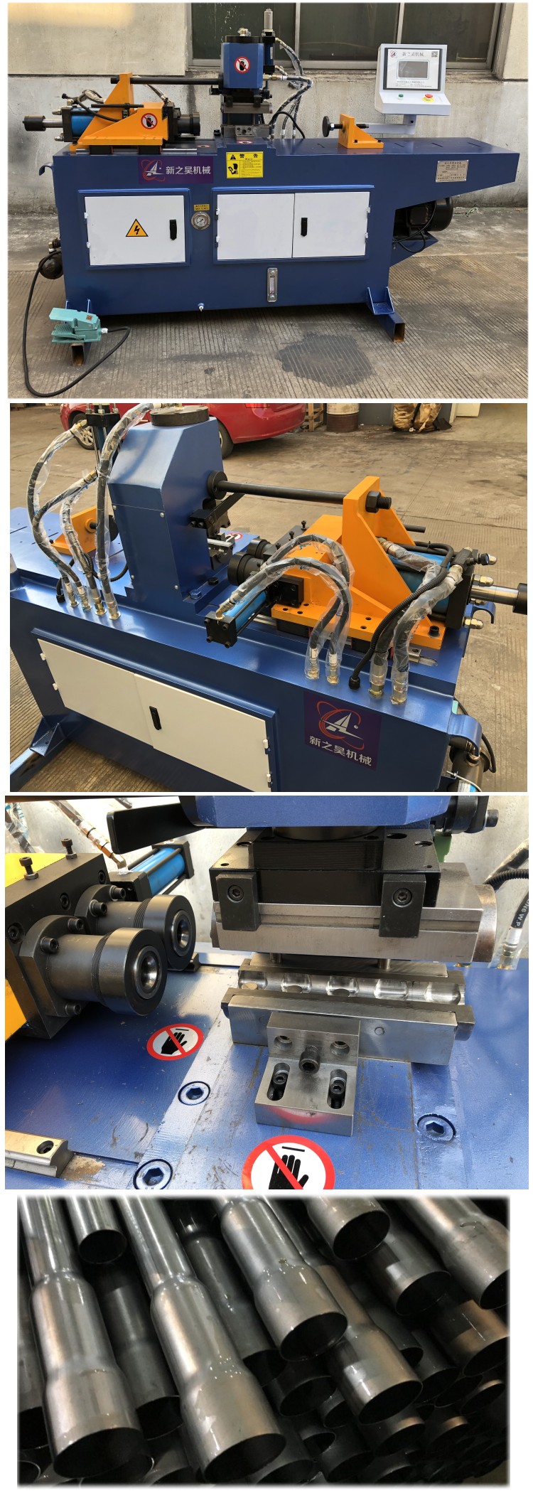 SG-60NC/2S?液壓型單頭雙工位縮管機,液壓驅(qū)動自動夾緊、自動液壓換模、自動縮管。具有縮管速率快,控制方便簡單等特點。所有程序編寫及輸入均在對話式操作屏上進行,所有的信息說明均以中文顯示,操作極為方便,快速。