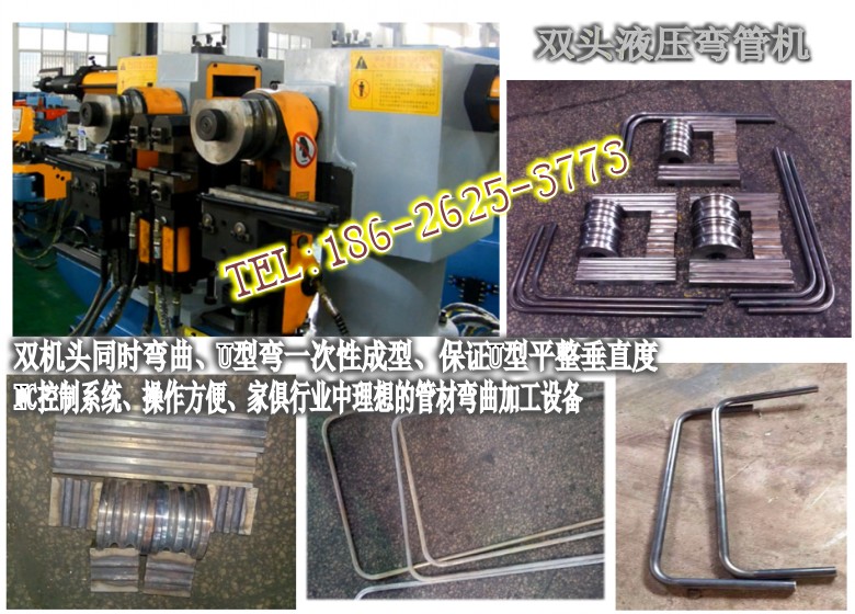 雙頭U型彎管機(jī)、采用雙機(jī)頭同時彎曲一次性成型兩個彎頭,能夠有效保證管材的U型彎的平行度
