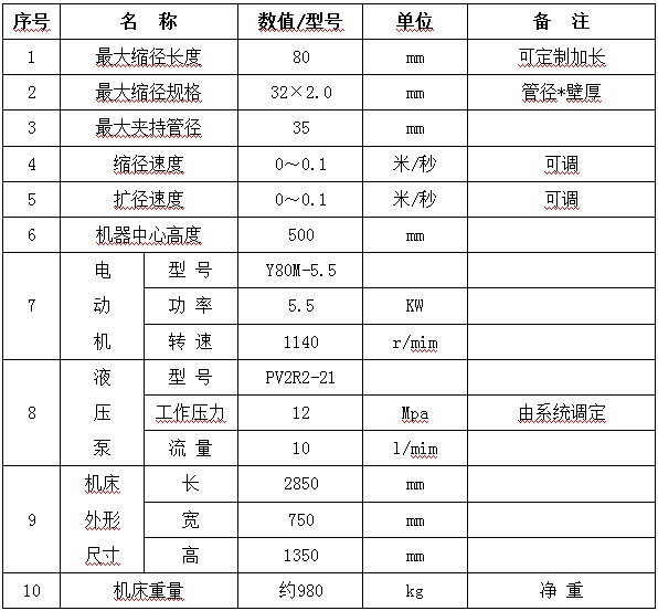 雙頭管端成型機(jī)主要技術(shù)參數(shù)